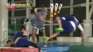 Water Buoy Fight: I knew exactly what this game was the minute I saw the set up haha. They are at an indoor pool and it's a water buoy. Each time will fight to the death on it and push each other off. From the looks of it, the Actor's Club (mainly Woo Bin, Jong Suk and Jong hyun) are pretty weak and useless lmao. And Jong Kook's sexy body doesn't help ahahahaha.